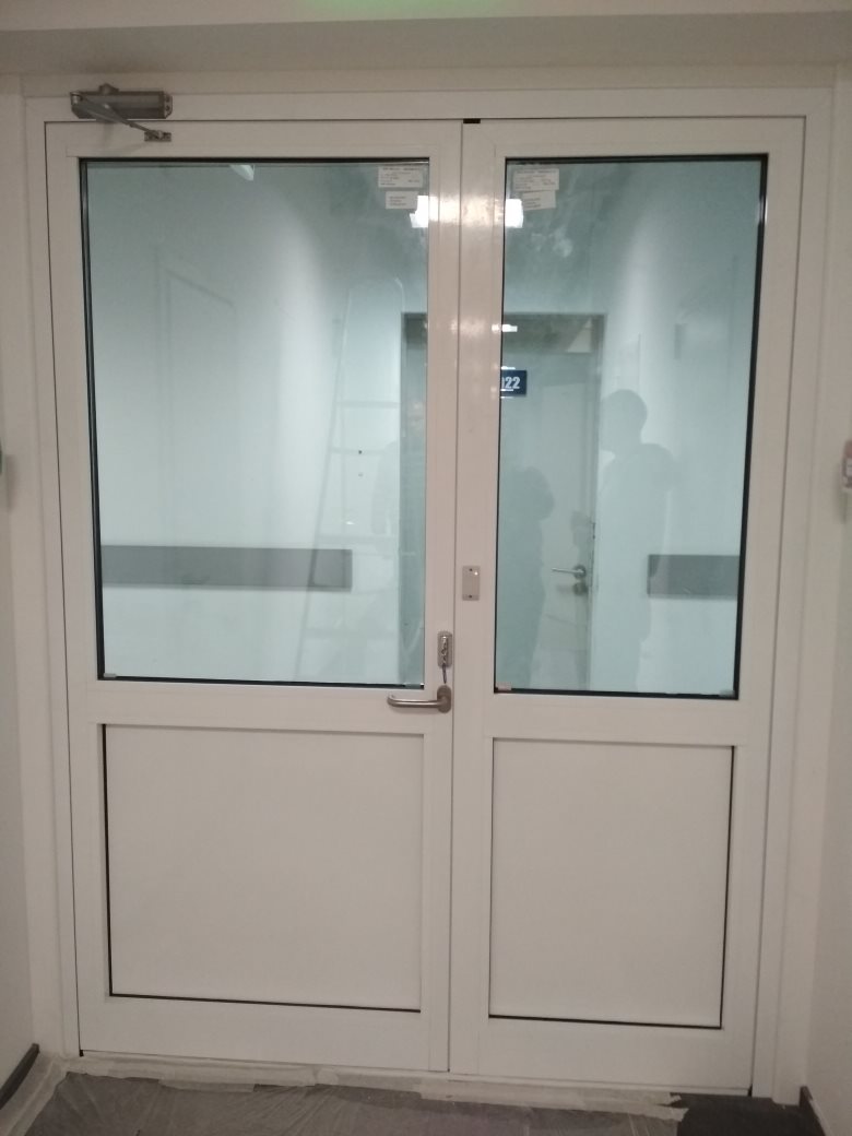 Теплая двустворчатая алюминиевая дверь (полустеклянная)